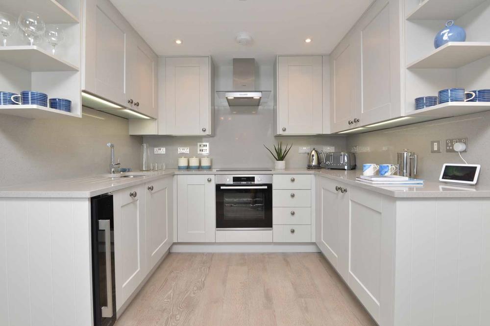 Finished to the highest of standards the property comprises of one double bedroom with soft close fitted wardrobes, Simple Human vanity mirror & a 43-inch flat screen TV. One twin bedroom with storage space and a 43-inch flat screen TV. The bathroom is complete with a 1200 walk in shower, heated towel rail, large wall mirror with a demister pad, Simple Human wall mounted sensor mirror and towel storage space. The open plan kitchen/lounge/diner is fully integrated with every modern appliance including Bosch Oven & Hob, Dishwasher, Fridge freezer, AEG wine cooler and waste disposal. There is a separate fitted utility/ storage cupboard with a Samsung washer dryer and a Dyson vacuum cleaner.